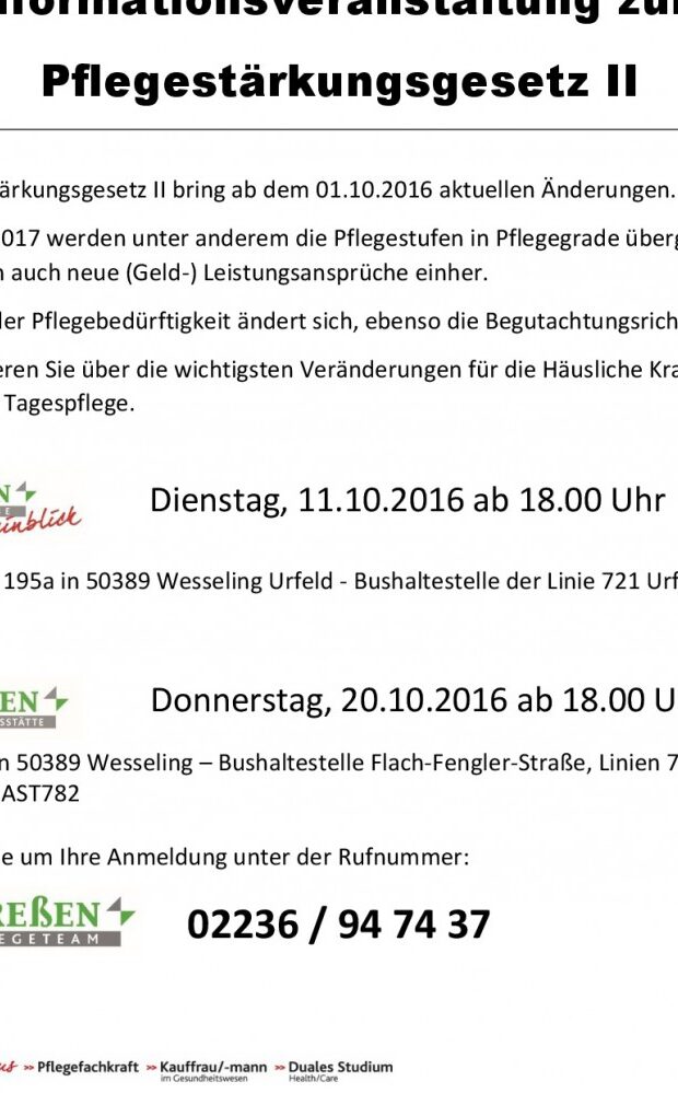 Pflegestärkungsgesetz II – Informationsveranstaltung - Pflegegrad, Pflegestufe, Pflegeversicherung, PSG II - 9. Oktober 2016